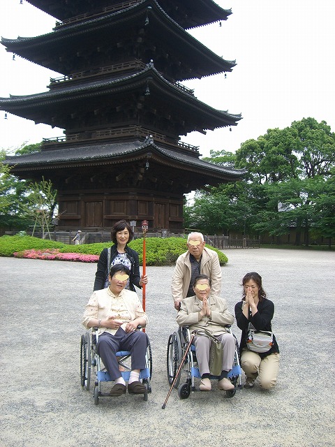 初めての宿泊業務となったY様ご家族は、80代のご両親と50代の娘様の3名で、お母様と娘様の二人が車椅子を利用されていて、この京都への旅行には2名のTHが同行しました。