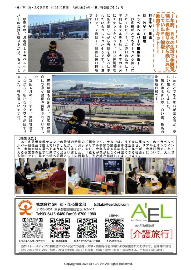 にこにこ新聞11月号「旅は生きがい!良い時を過ごそう!」…