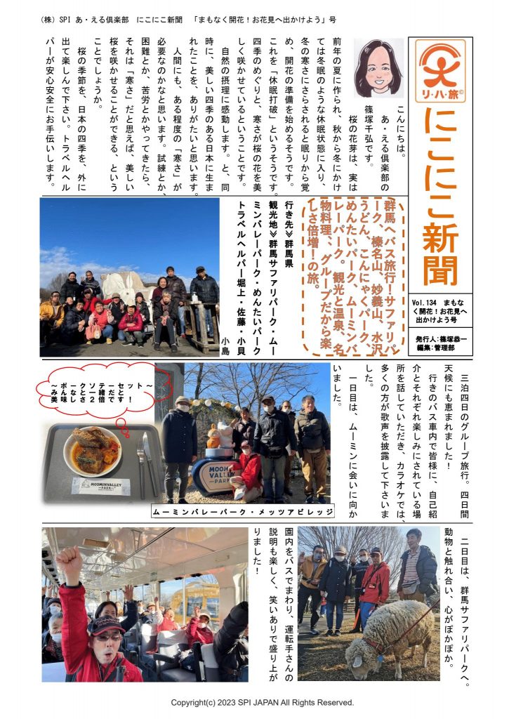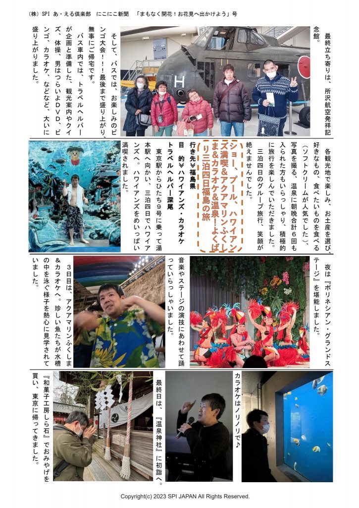 にこにこ新聞3月号「まもなく開花!お花見へ出かけよう」が出来上がりました!